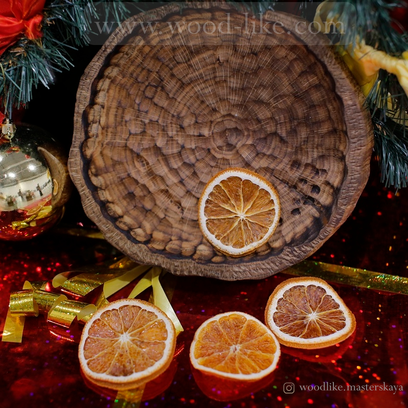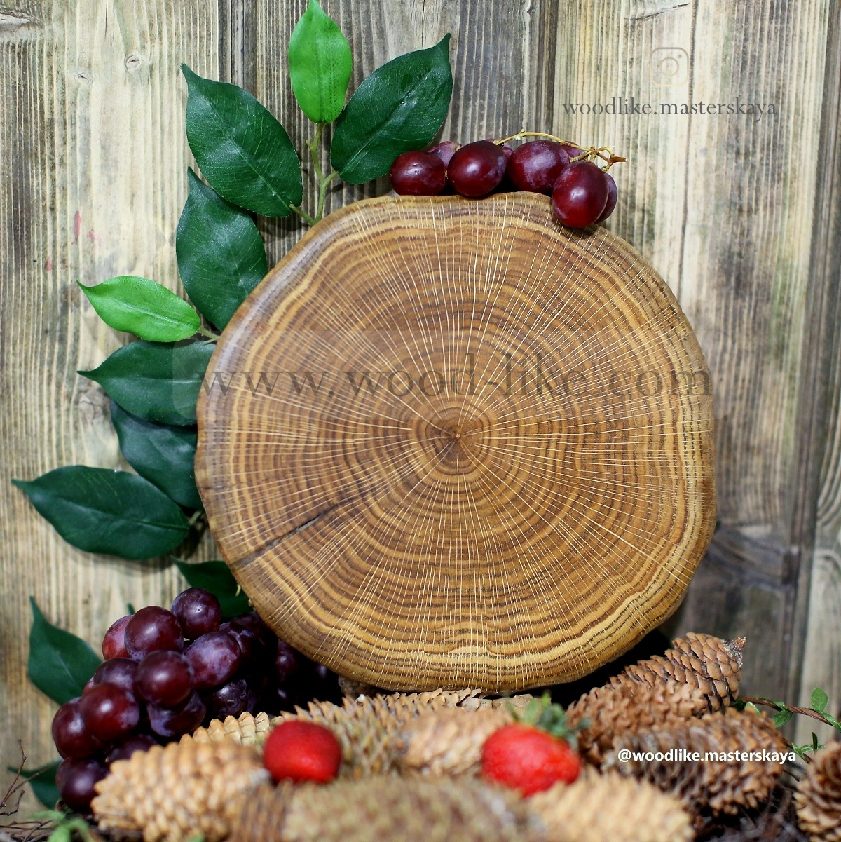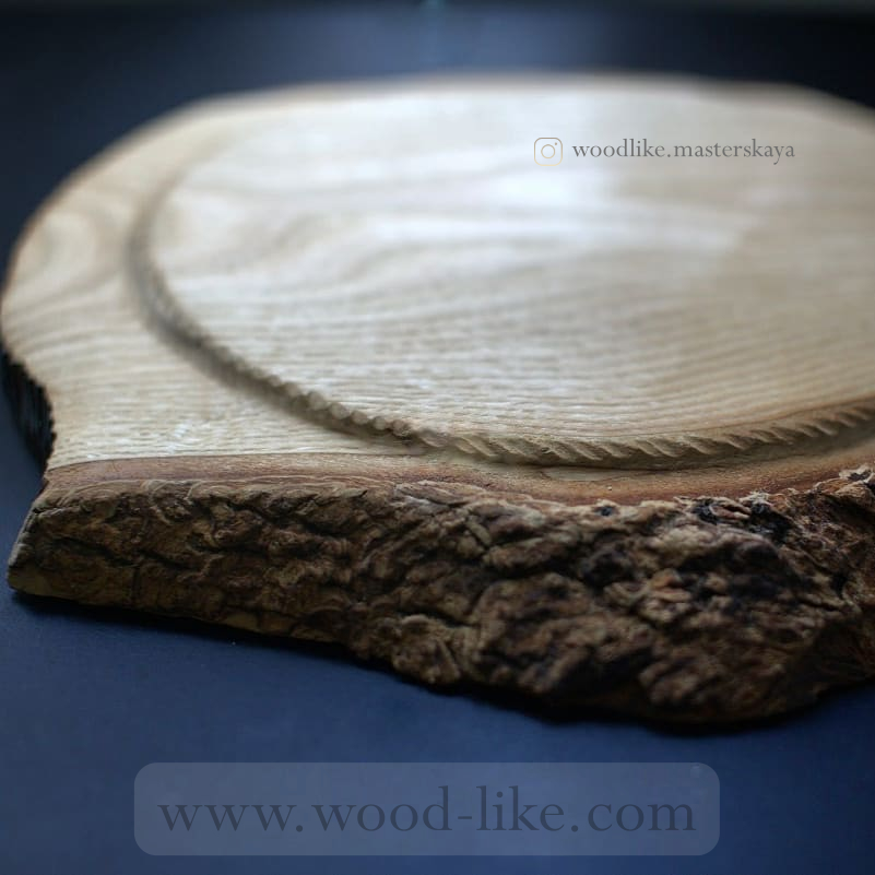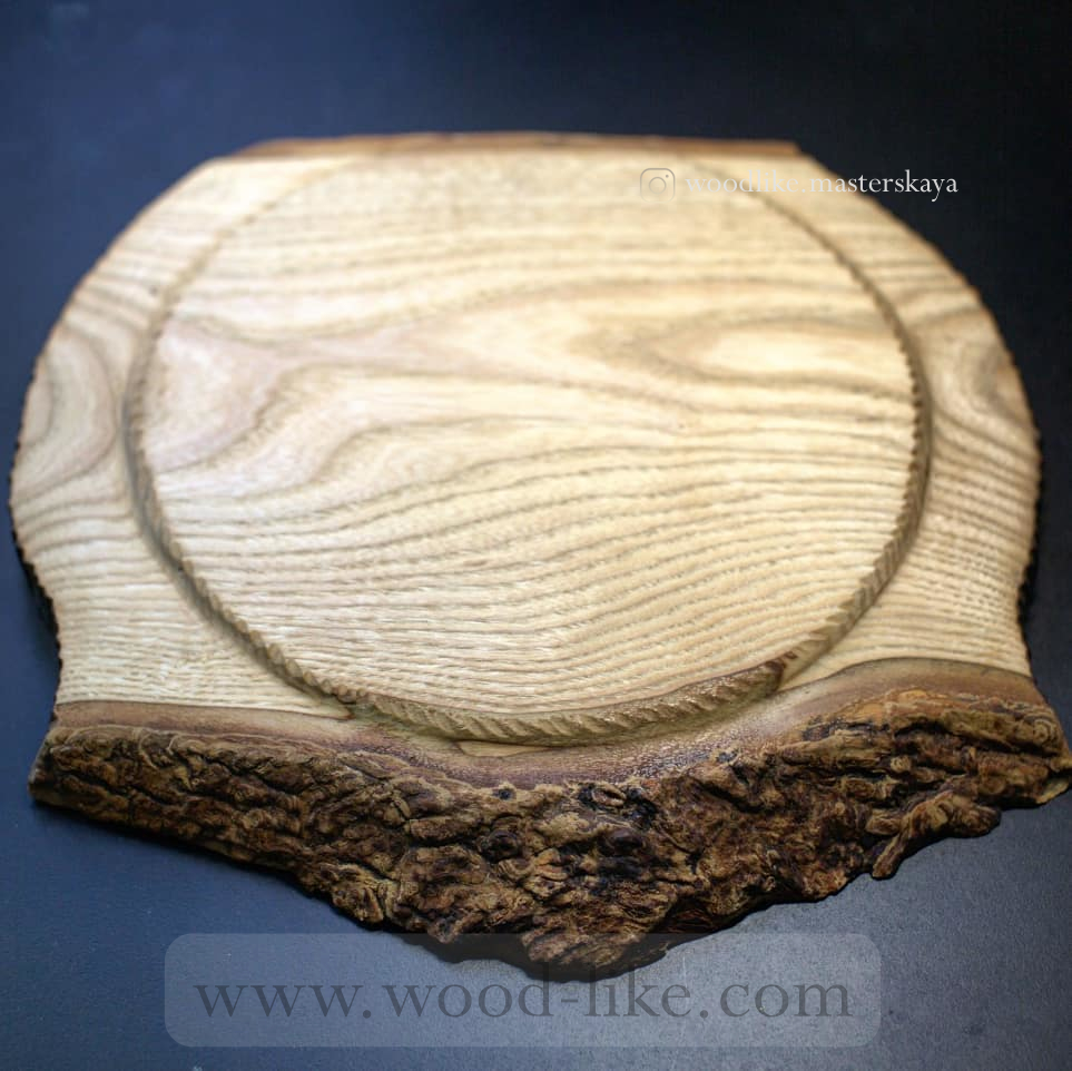 Тарелочка c одной и ровная красивая обработанная поверхность спила для сервировки с другой стороны.Очень удобна в использовании и красива для сервировки и в интерьере!