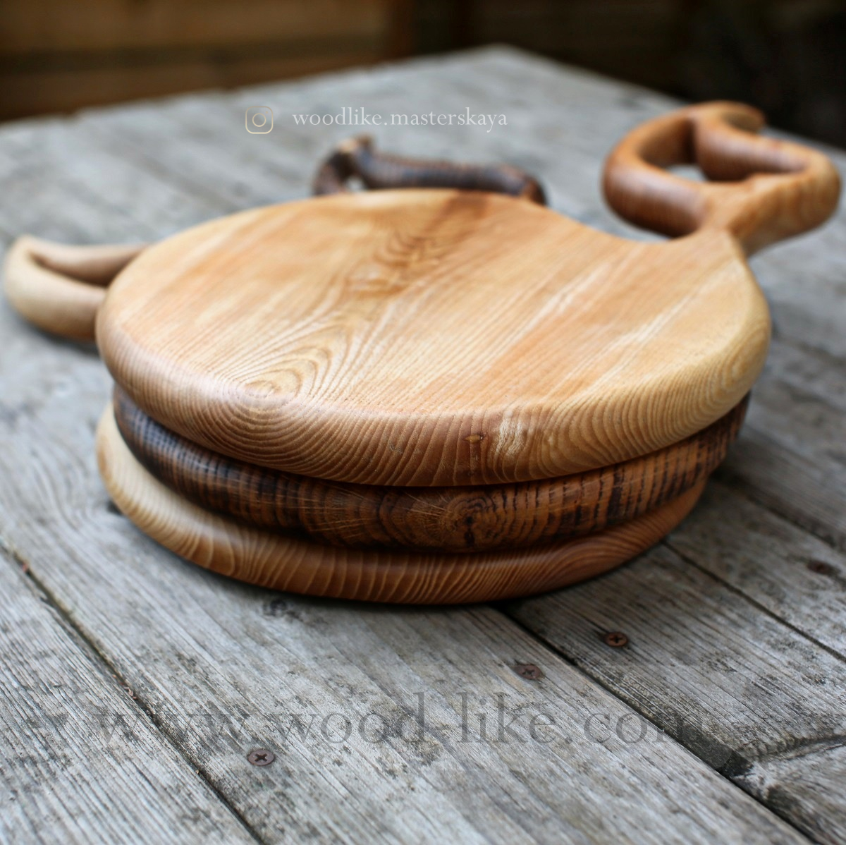 Набор досок в одном стиле. Эффектные, необычные и практичные формы украсят любую кухню и сделают приготовление еды еще интереснее. Благодаря набору досок, можно расширить назначение рабочих поверхностей: например одна - для овощей, другая - для мяса. При желании вы можете заказать нанесение рисунка с назначением или любой другой гравировки по вашему желанию. Ассортимент наших разделочных досок пополняется. Возможно изготовление любого дизайна! Породы дерева: дуб, ясень, акация и другие.