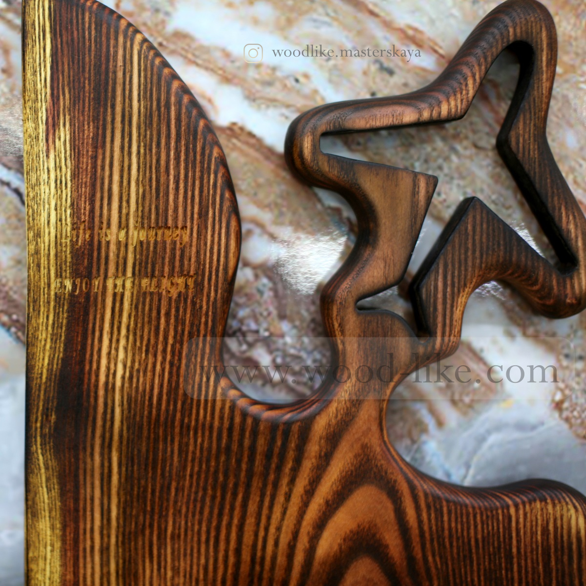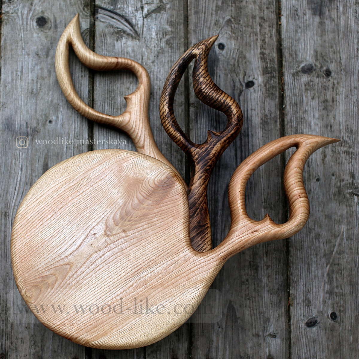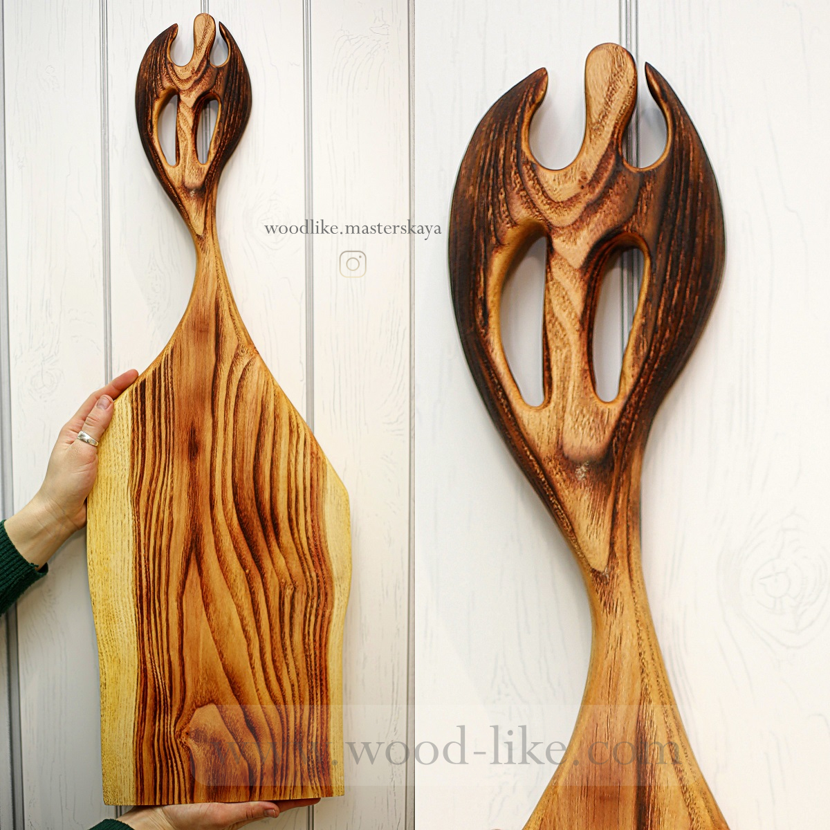 Эксклюзивная разделочная доска с рукояткой в виде ангела, где каждая сторона уникальна! Наполнит дом гармонией природы и станет необычным и достойным подарком для самых близких! ⠀ Благодаря приличной длине 70 см, она смотрится очень благородно и эффектно в интерьере и готовить на ней или сервировать - одно удовольствие! Ведь размеры рабочей зоны 20*40 см позволят комфортно подготовить продукты для дальнейшей обработки.