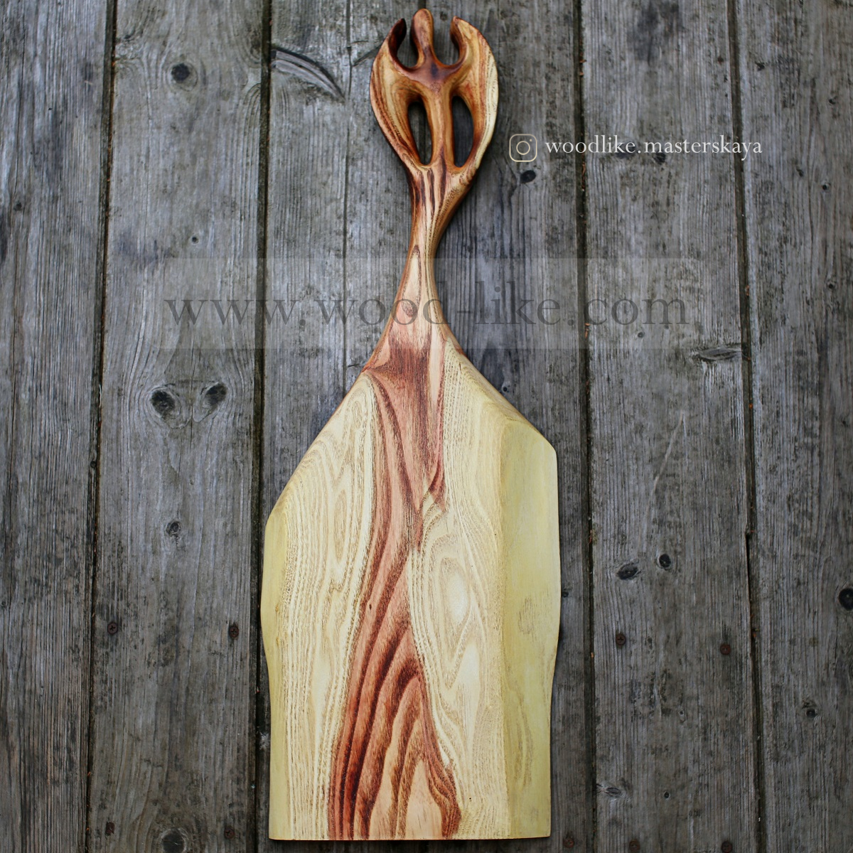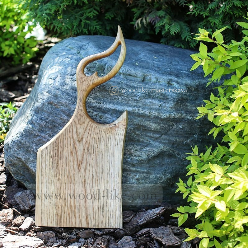 Необычная форма рукояти этой доски по своей тематике идеально подойдет для музыканта, пожарного и конечно же творческого человека. Выполнена под заказ по эскизу из твердой породы древесины - акации. Обе стороны рабочие и что примечательно, рисунки древесины необычные и красивые как на лицевой, так и на обратной стороне. Возможно нанесение гравировки фразы с любым вашим текстом (пожелание,инициалы например) за дополнительную стоимость, указанную в каталоге изделий.
