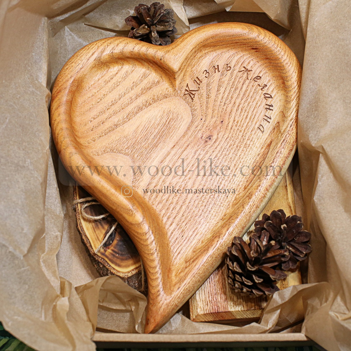 Тарелка авторская деревянная из массива+гравировка+подставка 23 ✕ 17 ✕ 2,5 см, ясень (твердая порода выбор)