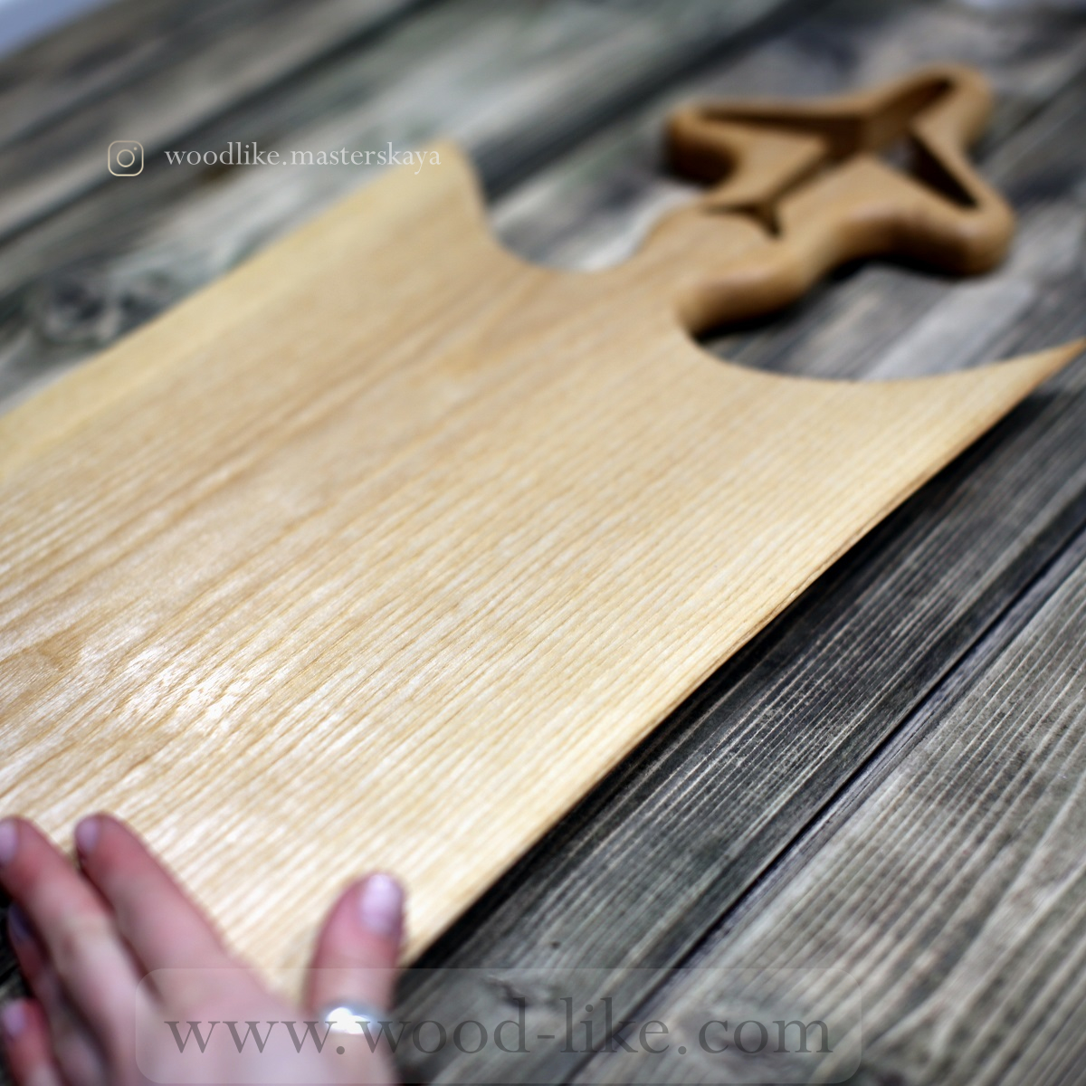 Авторская доска разделочная, для сервировки 50 ✕ 30 ✕ 2,5 см, массив ясеня (твердая порода на выбор)