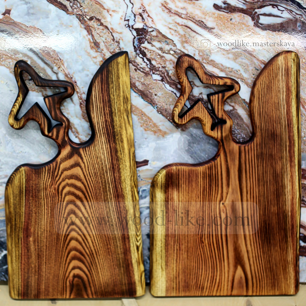 Продолжение серии разделочных досок с рукоятью в форме самолета и соусницей. Станут идеальными в любой компании и даже зарядят вас на лучшие путешествия. Наслаждайтесь эмоциями и проводите время на кухне с пользой и в удовольствие! А две доски можно разделить на двух владельцев даже ) ну это вы уже сами решите! Любят брать муж и жена такие с именной гравировкой или коронными фразами каждого, а так же когда в семье несколько человек посвятило себя авиации. Выбор за вами!