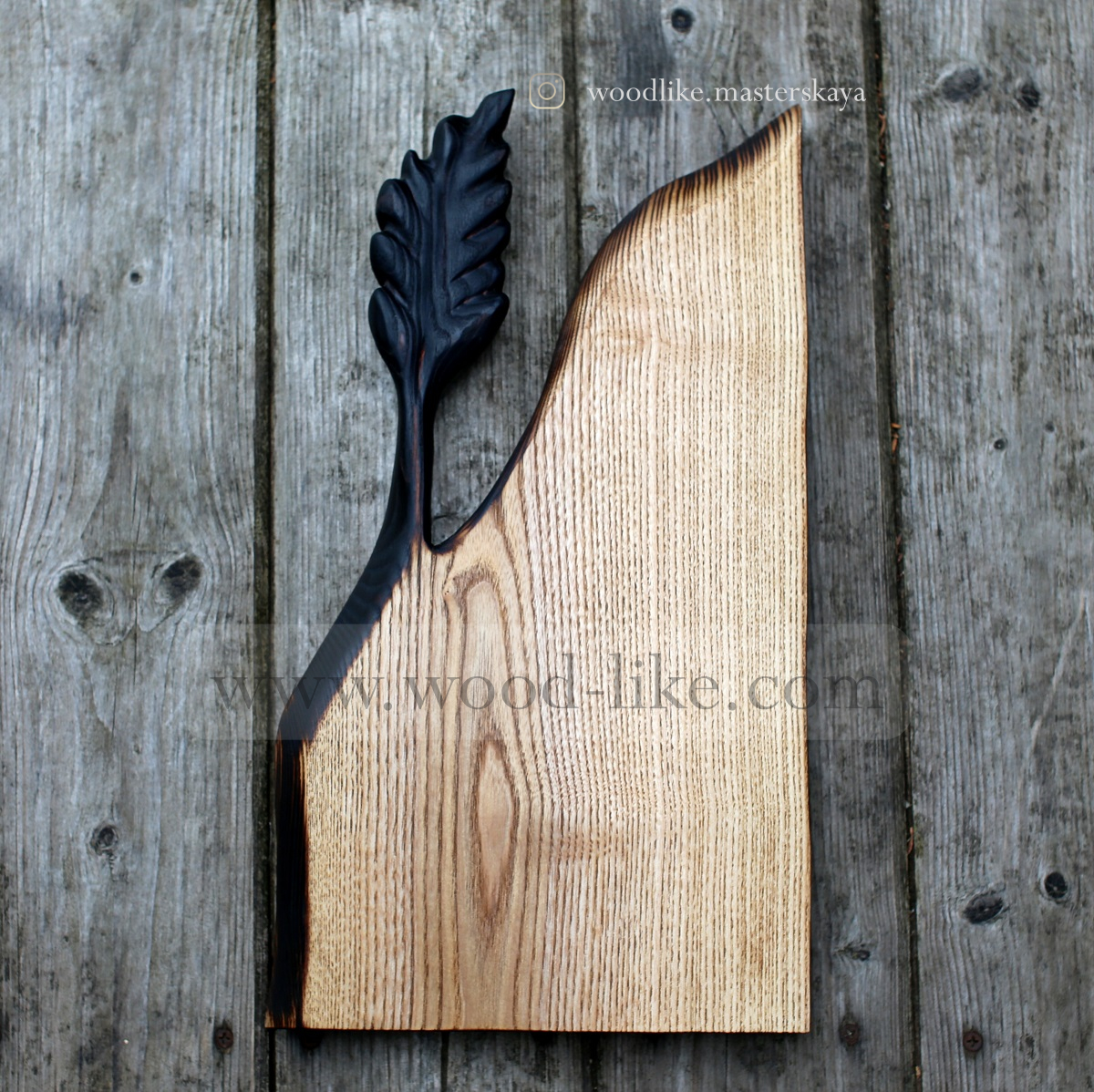 Благородная доска из карагача с листочками для тех, кому наскучили однотипные рукояти, кто хочет во время готовки еды кайфовать на кухне и заряжаться отличным настроением от самой природы! Сделано руками с любовью! Ведь вы этого достойны!